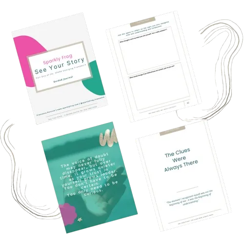 Coaching became the space that helped me process it all gently, compassionately, and with tools that actually supported me. That’s why I created Sparkly Frog Coaching and See Your Story for thoughtful, intelligent autistic adults navigating life after diagnosis or self-discovery. This journal is the guide I wish I had: a gentle companion to help you make sense of your past, explore who you are beneath the mask, and begin a life that feels like yours. You are not too much, too weird, or too late.